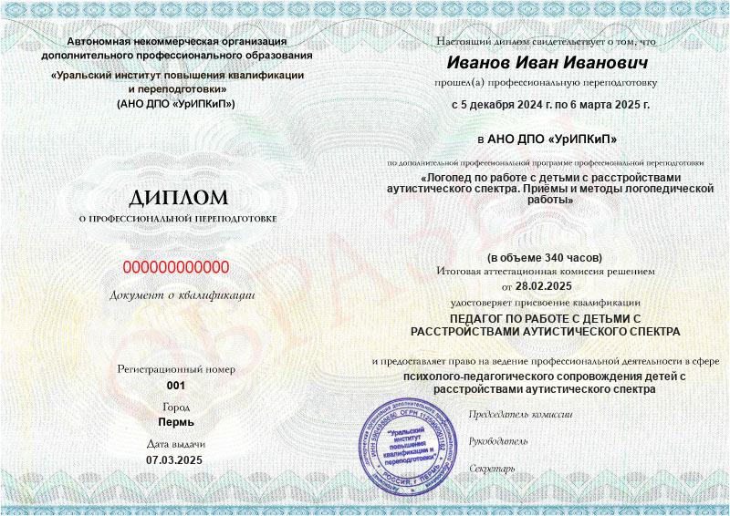 - Образец диплома о профессиональной переподготовке.