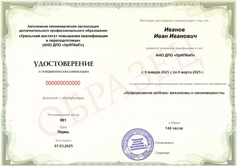 • Повышали квалификацию в АНО ДПО «УрИПКиП» – вам будет выдано удостоверение.