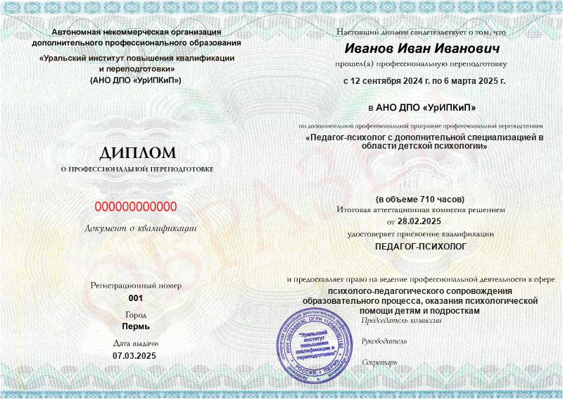 Да, дипломы и удостоверения оформляются в соответствии с действующим законодательством РФ. Документы печатаются на специальных бланках, заверяются печатью АНО ДПО «УрИПКиП».