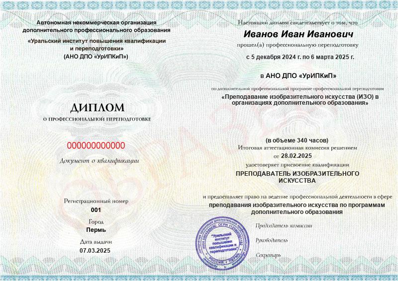 Да, дипломы и удостоверения оформляются в соответствии с действующим законодательством РФ. Документы печатаются на специальных бланках, заверяются печатью АНО ДПО «УрИПКиП».