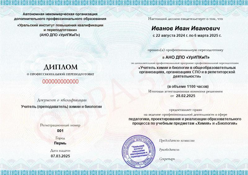 Курс обучения Учитель химии и биологии в общеобразовательных организациях, организациях СПО и в репетиторской деятельности (1100ч)