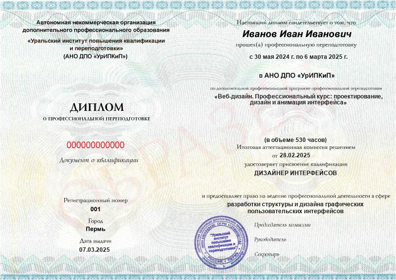 - Образец диплома о профессиональной переподготовке.