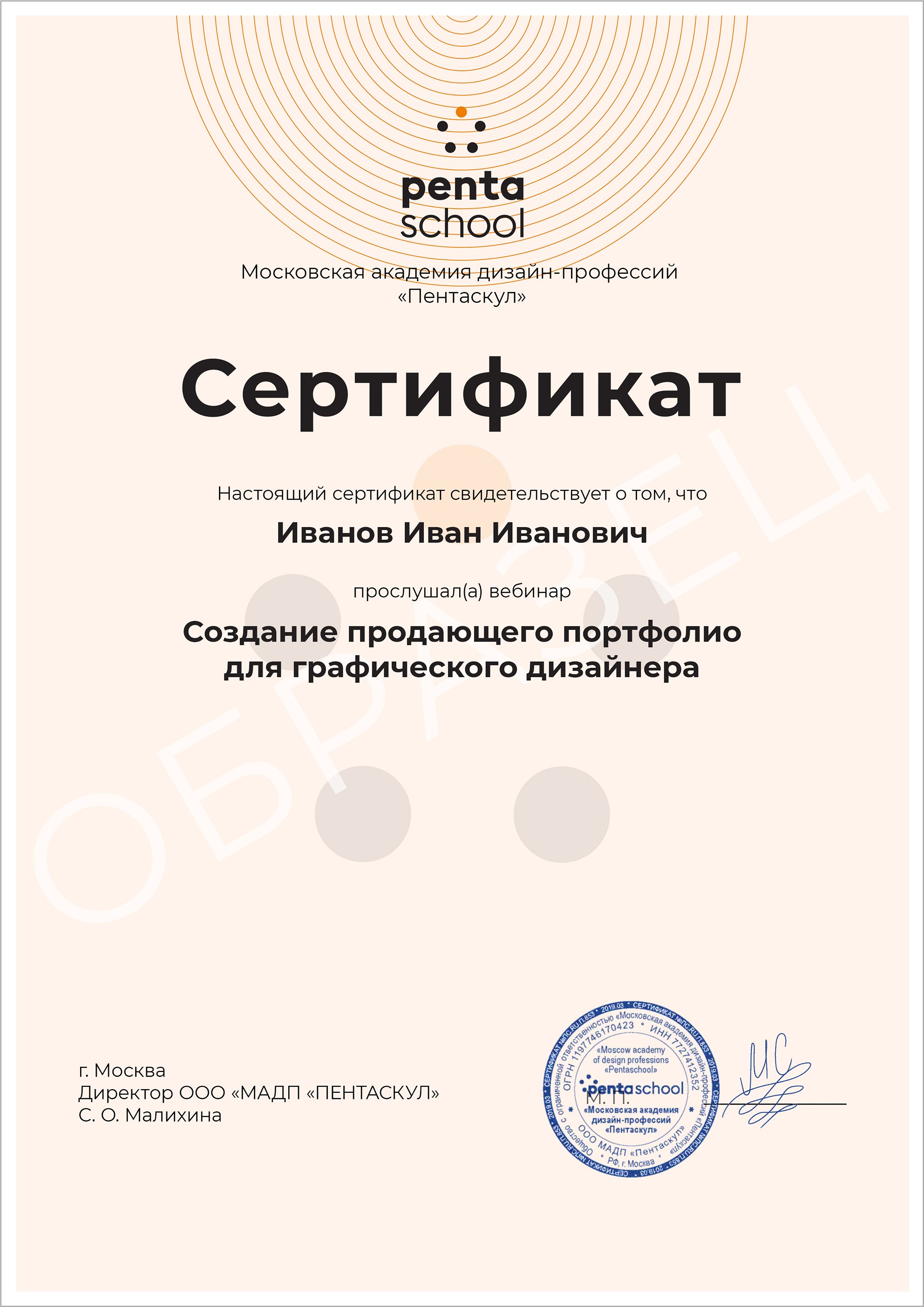 - Диплом московской академии дизайн-профессий Pentaschool.